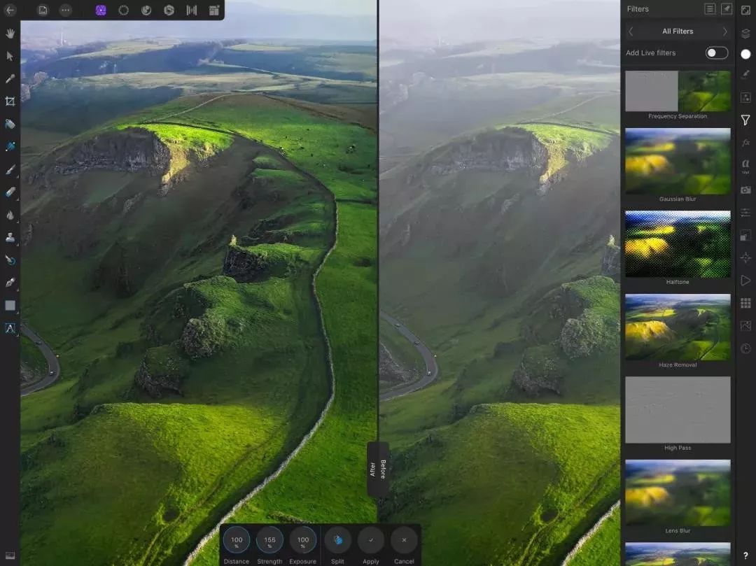 模糊、光照、扭曲和透视校正等效果都可以作为无损实时滤镜图层应用。这意味着您可以擦除它们,屏蔽它们,对它们进行重新排序以及随时调整参数。这是一种全新的工作方式。