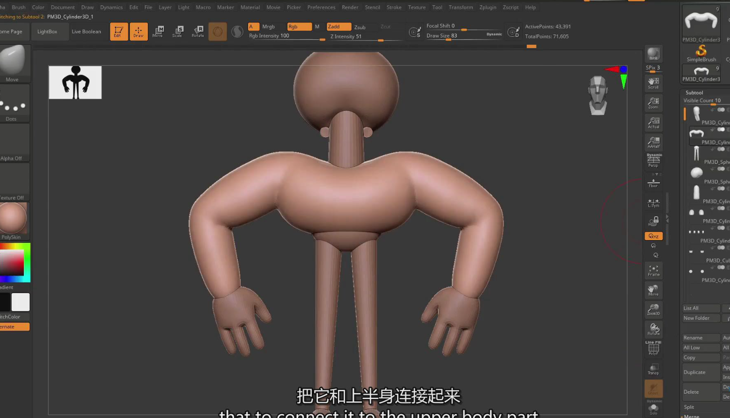 ZBrush个性化三维卡通人物建模贴图完整教程-中英字幕