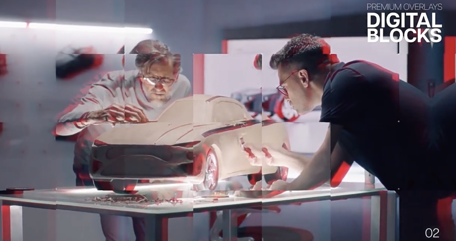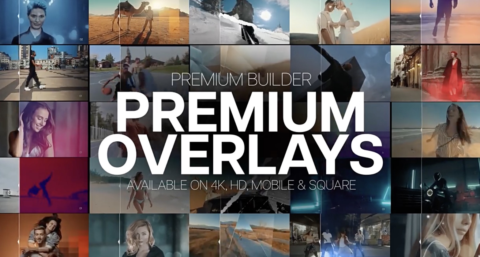 拥有16个高级覆盖类别,超过160多种独特风格预设,如光效、故障、污渍、马赛克,遮罩、VHS复古、烟雾、撕纸等。Premium Overlays 使用 PremiumBuilder 脚本扩展,动画预设效果可视化脚本方式,点击即可加载使用,脚本支持AE和PR,还提供AE模板工程。