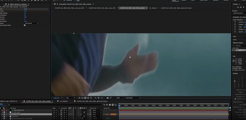 Extendo 是一款用于 After Effects 的边缘扩展插件,可在抠像、合成或遮罩处理中智能保留画面边缘细节,避免传统侵蚀工具导致的细节丢失,让主体边缘更加自然、干净。它类似 Nuke 的 EdgeExtend 或 Flame 的 PixelSpread,非常适合 VFX、Roto、Keying 等工作流程,帮助提升合成品质。
