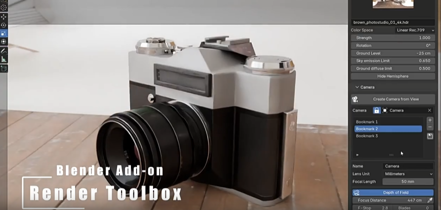 Render Toolbox 是一款适用于Blender的轻量级渲染辅助工具,提供一键 HDRI 光照、相机书签管理、交互式“绘制光照”、以及镜头炫光、畸变、颗粒等多种后期效果,帮助用户快速打造高质量的摄影级/电影级画面;同时更新版还改进了透明背景兼容、光源管理、多视图同步等流程,让渲染设置更直观、高效、易用。