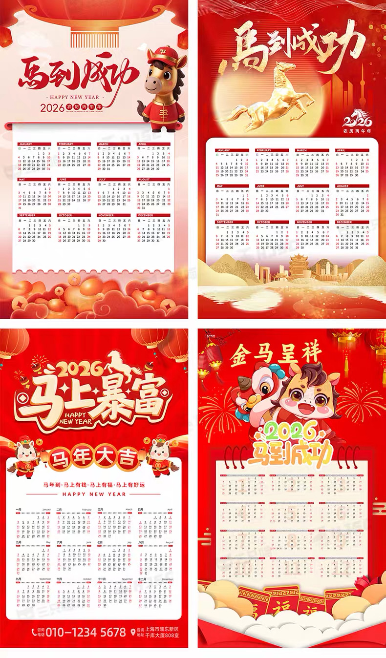 houqizxs2 设计模板 2026-01-11 2026马年新年春节金马贺岁日历月历挂历海报PS设计素材模版PSD 格式:PSD 数量:36 为你提供最新、最优质的视频\摄影\设计后期资源!助你快速成长为后期大神!后期自修室 » 2026马年新年春节金马贺岁日历月历挂历海报PS设计素材模版PSD