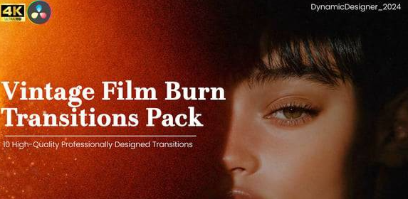 复古胶片燃烧过渡包是一套专业的10个电影转场合集,灵感来自真实的模拟胶片烧录和复古电影美学。